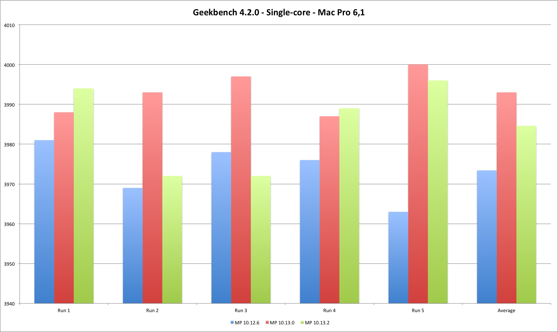 | Single Core | MP 10.12.6 | MP 10.13.0 | MP 10.13.2 |