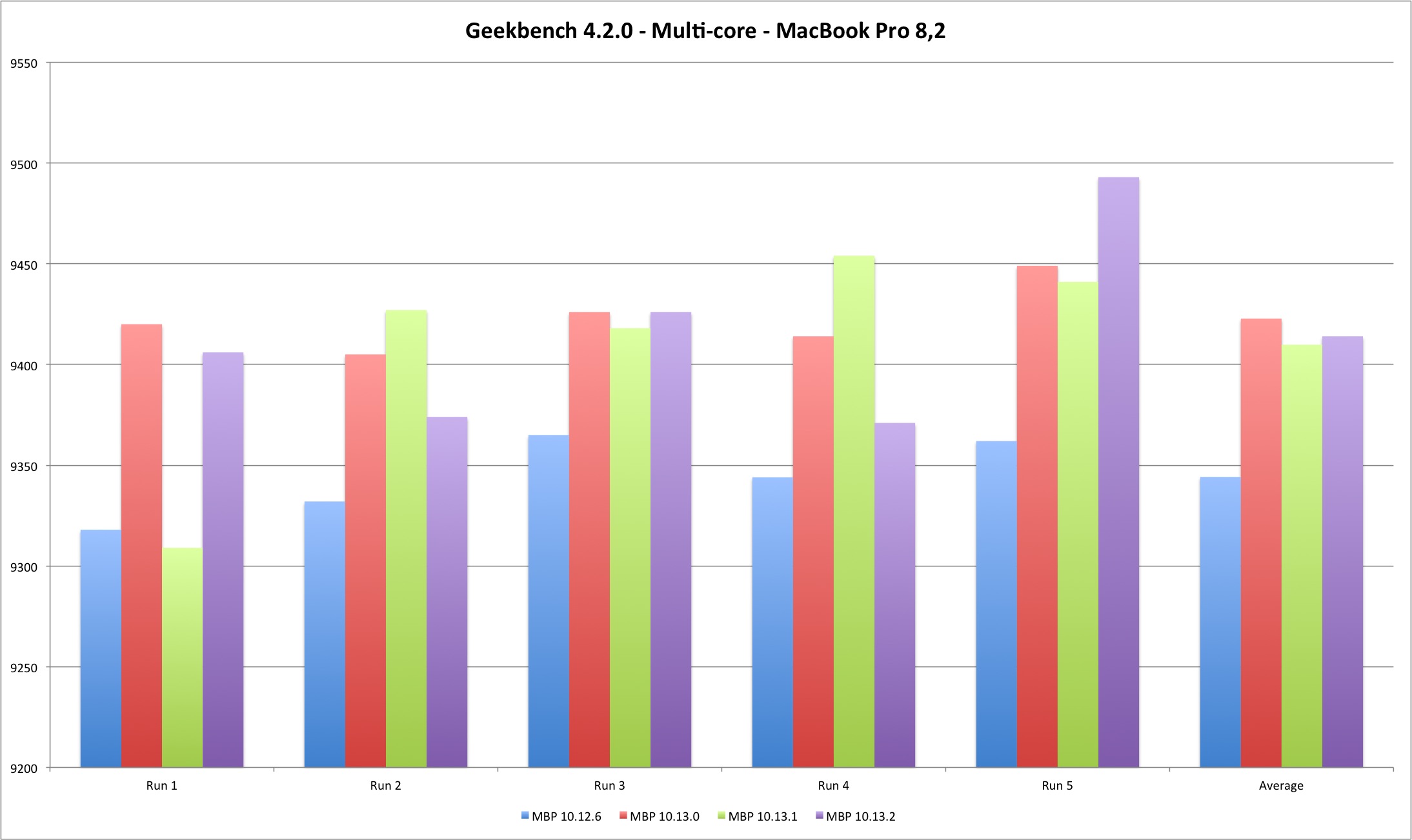 | Multi Core | MBP 10.12.6 | MBP 10.13.0 | MBP 10.13.1 | MBP 10.13.2 |