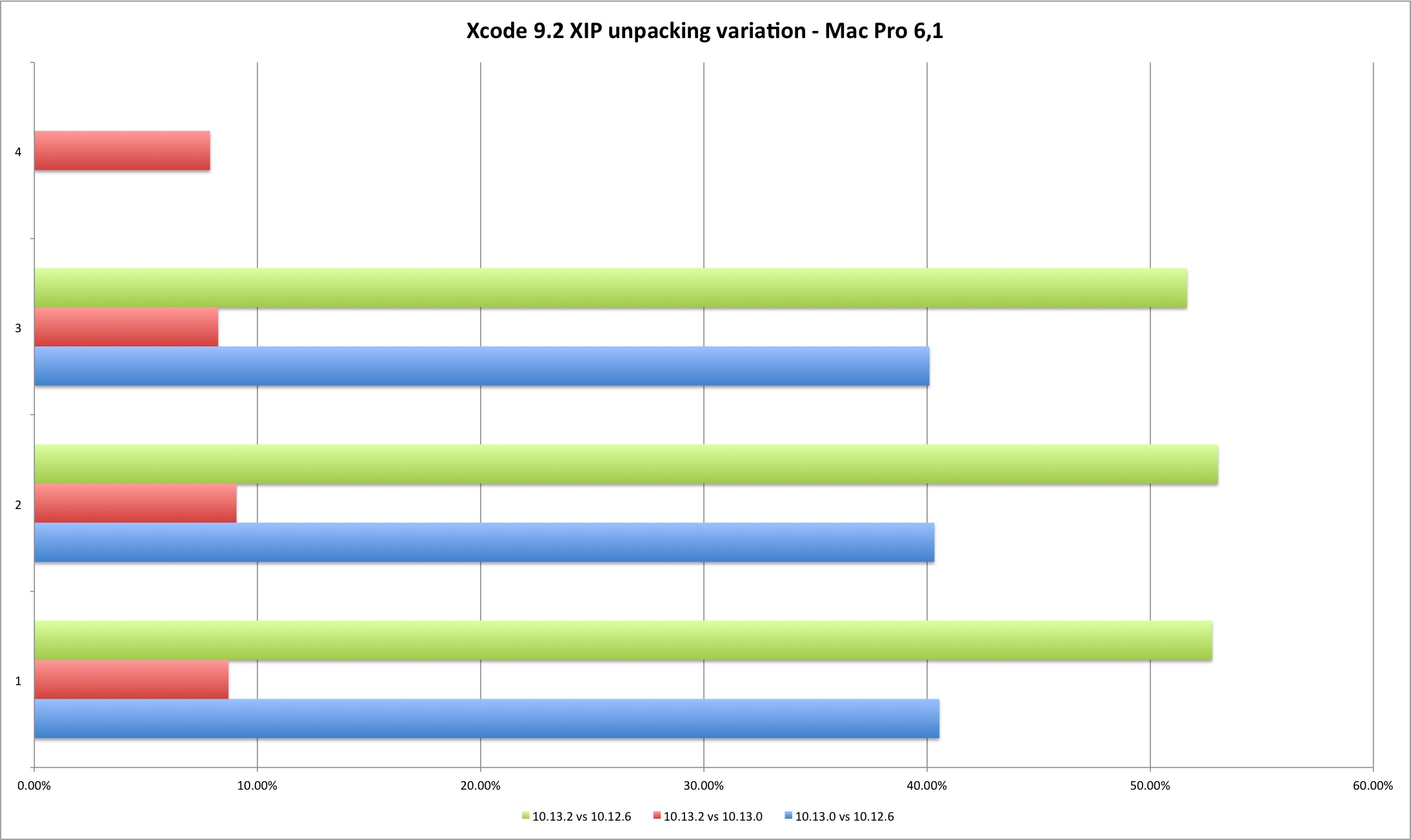| MBP 10.13.0 vs 10.12.6 | MBP 10.13.2 vs 10.13.0 | MP 10.13.0 vs 10.12.6 | MP 10.13.2 vs 10.13.0 | |